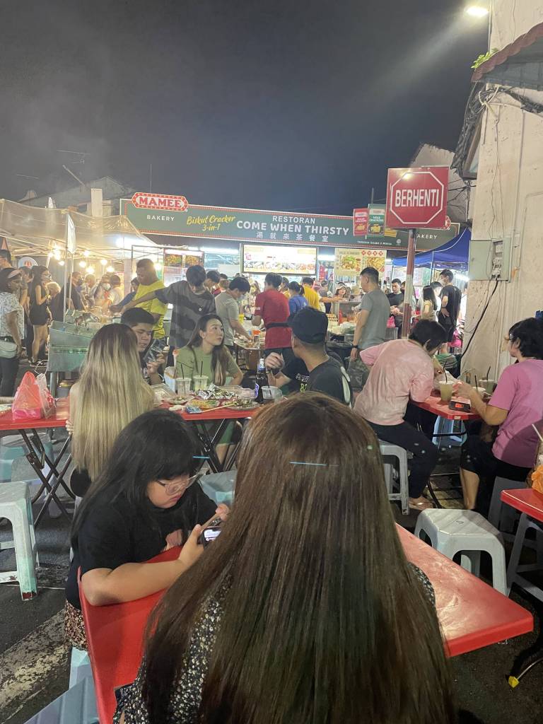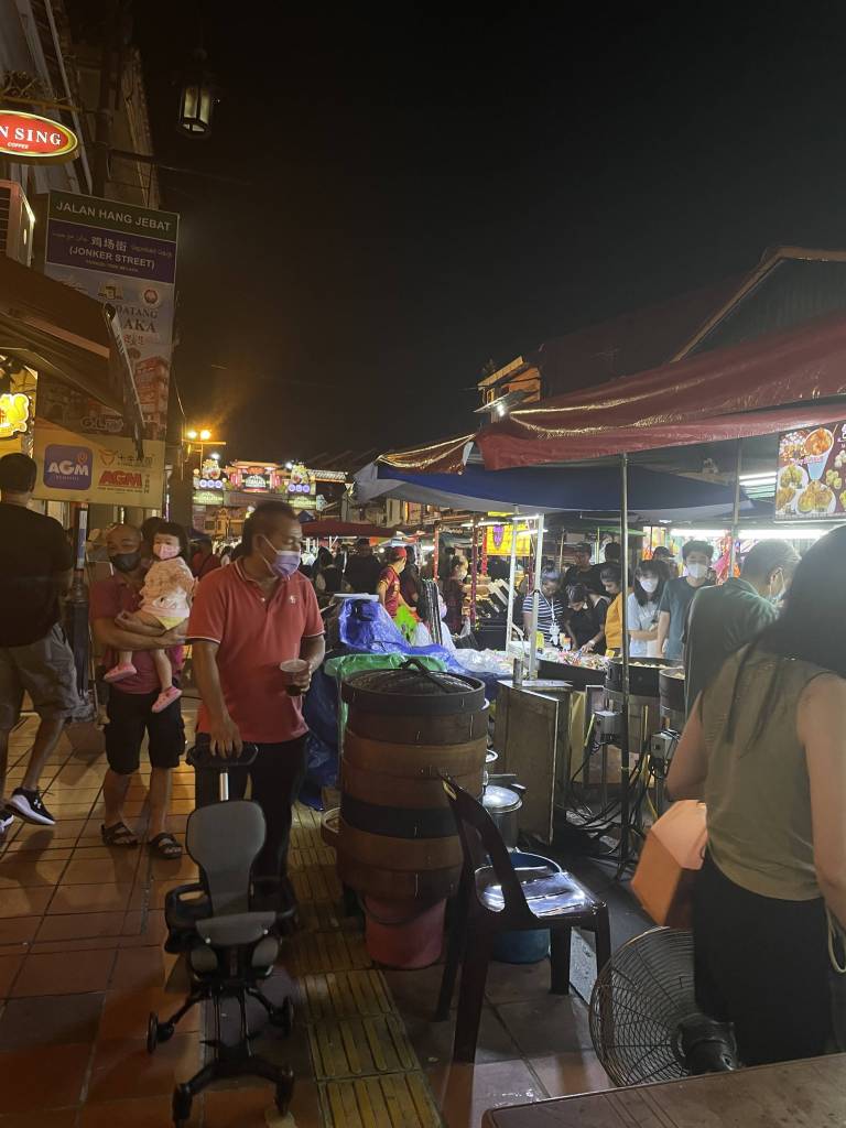 Once we return the bikes, we decide to check out Asam Pedas Claypot Restoran Kota Laksamana for dinner. The place has been recommended by both my taxi driver on the first day as well as Pis. It is famous for the grilled fish in tamarind soup called “Asam Pedas”. Since non of us have tried the dish before, we cannot confirm the authenticity, but the overall experience sitting on the typical small red plastic chairs in the parking lot seemed legit. We later return to Jonker Walk Night Market for dessert. Here, Alice suddenly gets a call from some local guys she met the previous evening. They invite us to join their jam session at the Melaka River and we end up staying out until late. When the guys mention their plan to head to a hidden away waterfall the next day for a birthday celebration, I briefly regret that I have already bought my bus ticket to Singapore in the afternoon.