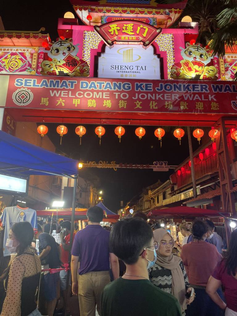 But first I have to check out the main culinary of Melaka: Jonker Walk Night Market. Every Friday, Saturday, and Sunday evening, the street is lined with a variety of food stalls offering a wide range of local Malaysian treats and snacks. Some of the popular street foods you can find include: Chicken Rice Balls and Satay Skewers of marinated meat (usually chicken or beef) served with a peanut sauce. Popiah: A fresh spring roll filled with vegetables, meats, and a flavorful sauce and Nyonya Kueh: Traditional Peranakan sweets made with rice flour, coconut, and pandan, showcasing the region’s unique Straits Chinese culture. Cendol: A refreshing dessert made from shaved ice, coconut milk, palm sugar syrup, and green rice flour jelly, often topped with red beans or corn. Other than food, the market also boasts stalls selling souvenirs and all kinds of goods. I even pass a man getting a full on back tattoo in the small street.