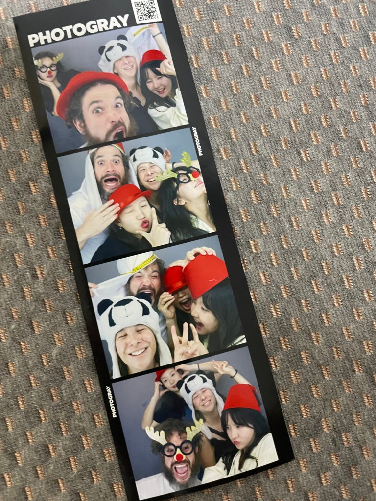 We then head over to the main party street, where we find an empty table at a chain pub. The place is popular for its Rabokki, a combination of Ramyeon and Tteokbokki. And along with the hearty second course of the night, we naturally have to order more drinks. Once again, it’s a long night filled with laughter and many travel stories are being shared. Only at around 2am, we finally leave the pub. While contemplating our next step, Remy notices a photobooth shop on the other side of the street. It’s open 24/7, so we quickly head inside to take some commemorative pictures. The fun part about this typical Korean experience is the hats, glasses, and costumes available. 4 pictures later, we head back out on the street, say farewell to Remy and then grab a Kakao Taxi to return to Sinae’s apartment. Once we get home, I finish packing, so I don’t have to do it the next morning. Just when I close my large backpack for good, Sinae hands me about 15 packages of dried seaweed to bring as a gift for my friends in Central Asia. Can a person be more hospitable?