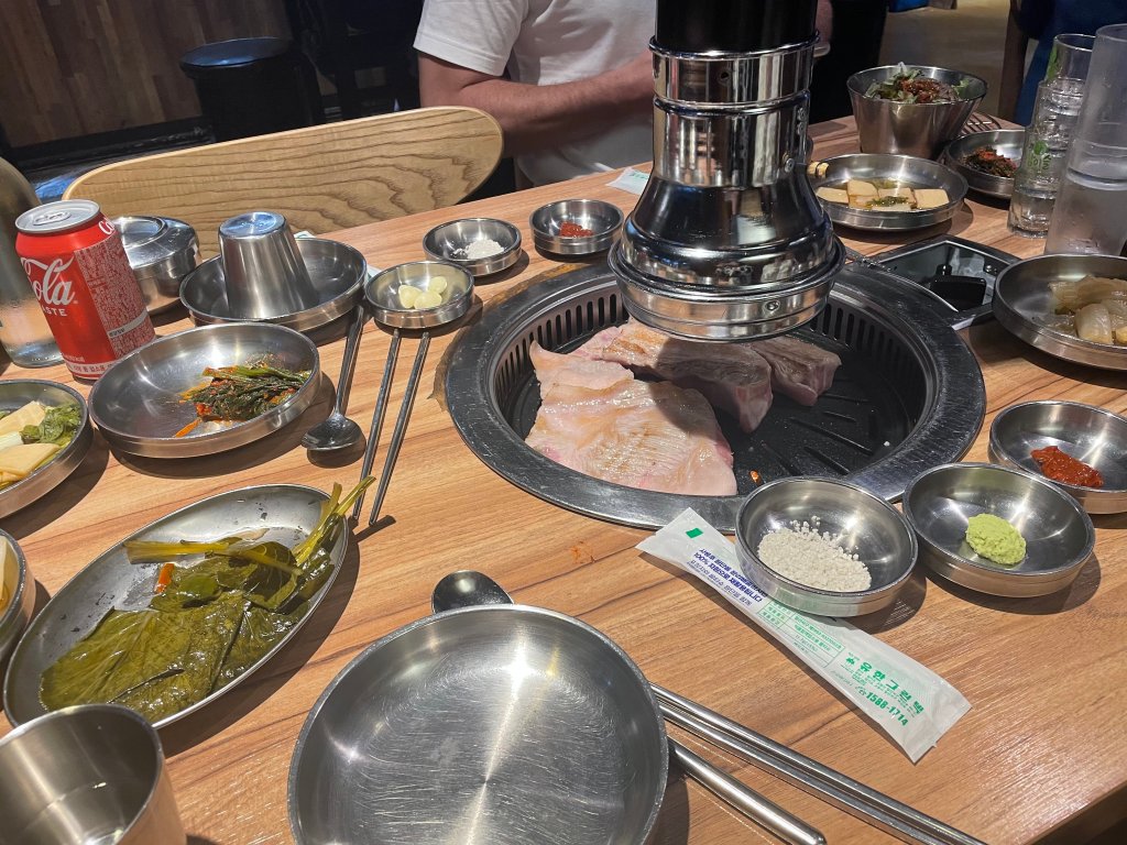 The following day is my last full day in Korea. It’s a Friday and I have to finish up work before packing for my flight the next day. (Mind you, between all the drinking, I have been working full-time!). However, another traveller whom Sinae met during her recent stay in Vietnam arrives at her house at around noon. Everyone is in a playful mood and I end up signing off and closing my laptop early. With the small apartment already quite crowded, the Belgian guy chooses to stay at a cheap guesthouse in Hongdae where we are planning to spend the evening. We catch the metro and drop of Remy at his accommodation. While he checks in and freshens up, us girls go on a stroll through the neighbourhood, looking for a nice Korean BBQ restaurant for my farewell and Remy’s welcome dinner. For once, we manage to finish all the food (even the kimchi refill, rice, and soup. But of course, this wasn’t all.