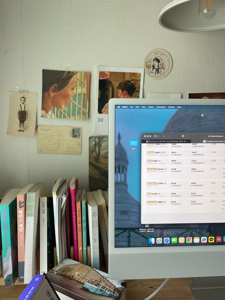 When I finally arrive at my friend‘s place, Sinae is home too and we update each other about the events of the past 2 months. As always, we end up laying in bed, showing each other funny videos until late at night. Luckily, the next day is a day off for me. So I only get up once Sinae lurs me out of bed with the anmouncement that breakfast is ready. Today we‘re having Gimbap with homemade Kimchi and coffee. It really doesn‘t get more Korean than this. I spend the afternoon planning my upcoming trip to Central Asia. Grateful that I can to use Sinae‘s large PC monitor, I attempt to decipher yet another unfamiliar script on the Uzbek Railway website. After researching a bit more I finally locate the right train for the experience I hope for and book my ticket. Sinae is also done with work for today and we spend the rest of the day hanging out at her apartment and playing with the neighbour‘s kids.