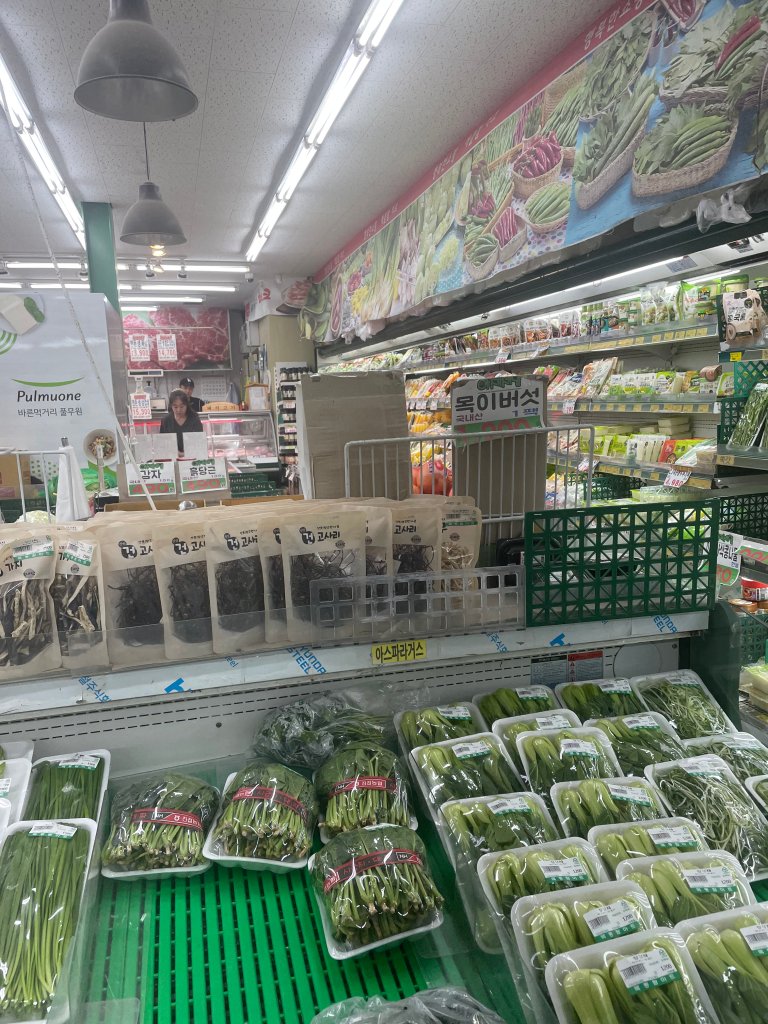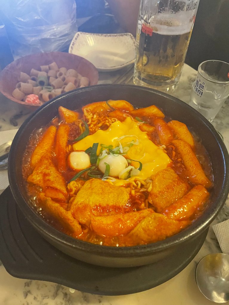 I spend some time there reading, before the sunset time makes me feel too lonely. Looking at all the people hanging out with their loved ones, I imagine what it would be like for me to live in Seoul. Just then, Sinae calls and asks me what I want to eat for dinner. We agree to cook at home and meet at a supermarket close to her house. There are lots of vegetables, sprouts, and mushrooms for sale, so we buy all the ingredients for a hearty hotpot dinner. And since according to Sinae a meal is incomplete without meat, this also includes generous slices of pork and beef. At first, I think it’s a bit excessive to make 2 different soups for only 2 people. But with the cleverly divided pot, it’s super simple and much more fun to eat 2 meals in one. And to top it all of, we end the evening with a quick visit to the nearby convenience store to buy some beer to fuel another late night deep discussion.