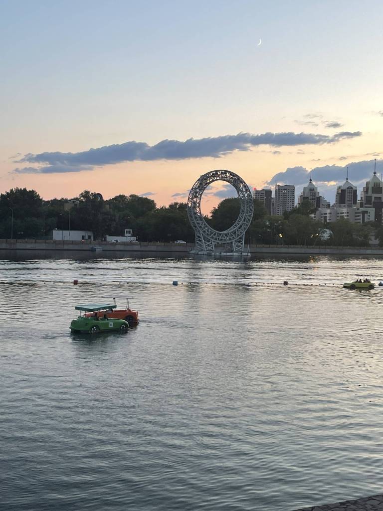On my last night in Astana, we explore another of the city’s parks. Astana Central Park is a lot bigger than I expected and provides a number of architectural highlights. From the colourful entrance gates to the futuristic Atyrau Bridge across Ischim River on which pedal boats in various shapes zip from one side to the other. With the view of the skyline and the orange sunset sky in the background, we walk along the river for a while before stopping in a nearby hot dog restaurant for dinner. As usual, we mix light hearted banter with deep topics and end up discussing societal expectations of women regarding marriage and the like.