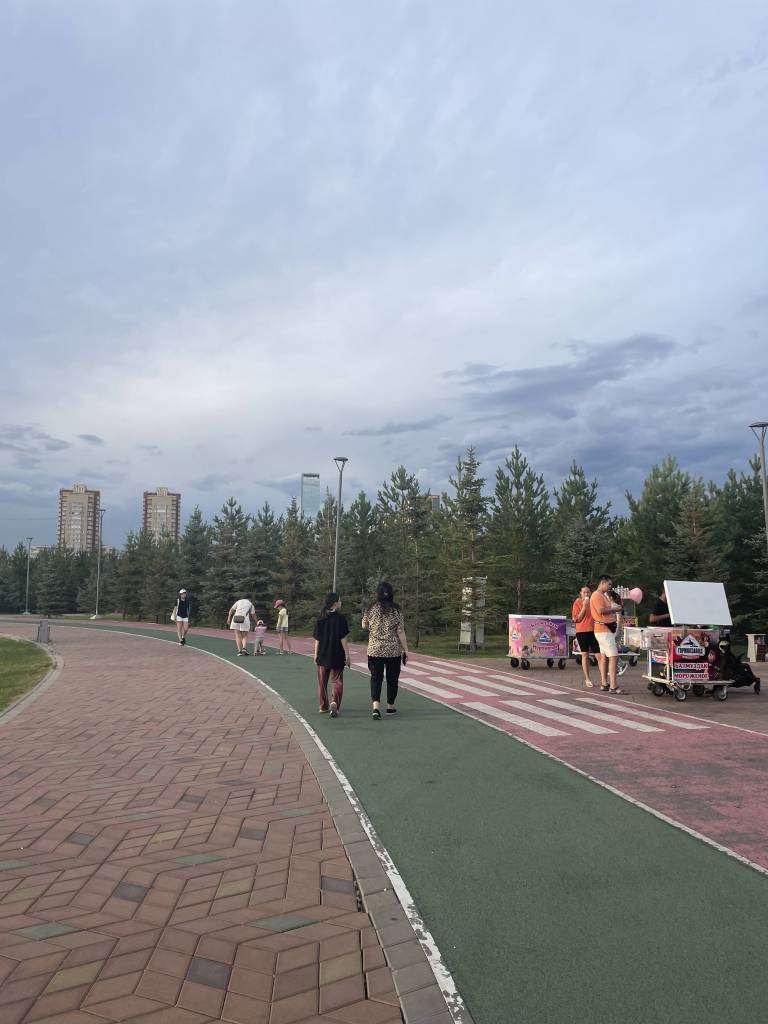 Dariya shows me around the most western-style apartment I have seen in almost a year. I first inspect the large bathroom with amazing water pressure and excitedly take notice of the full oven in the kitchen, where my host prepares our late-night snack: a traditional dish of bell pepper stuffed with minced meat and onions with a salad as a side. We chat until 2am, luckily my Japanese company’s office is closed the next day due to a public holiday. I sleep well on the comfy blue sofa and enjoy a leisurely day off doing nothing before Dariya returns from work in the late afternoon. Since the weather finally clears up at the same time, we head out for a walk to the nearby Expo site from 2017.