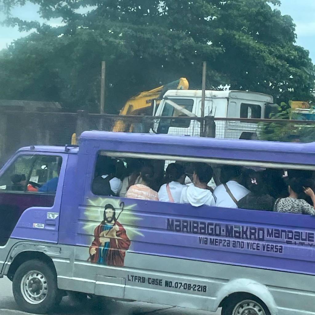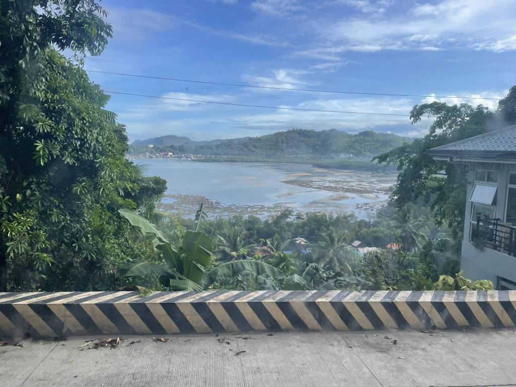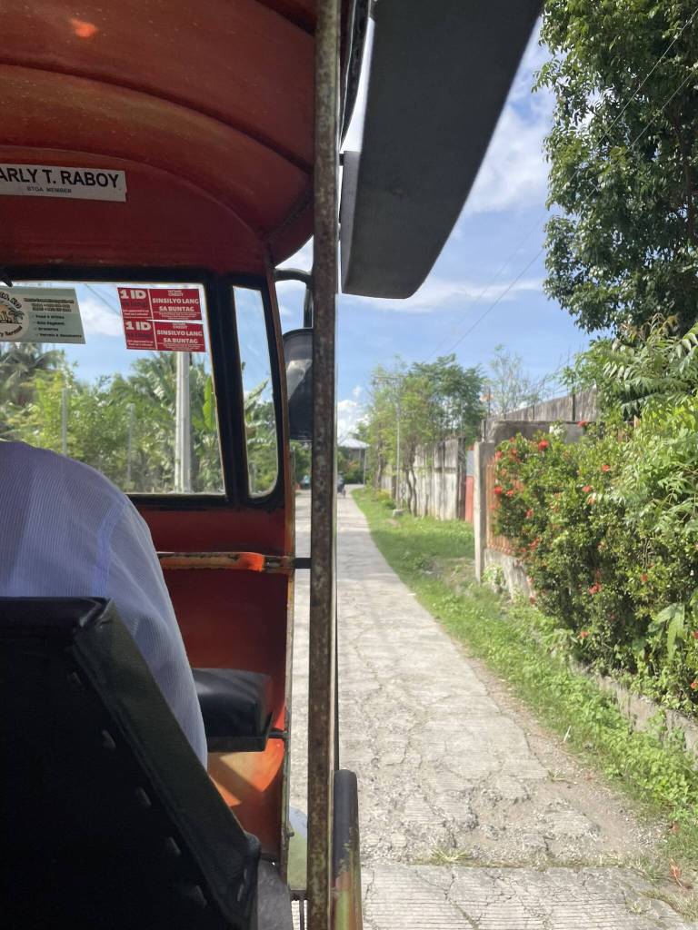We make good progress on the curvy roads crossing the mountains of central Cebu island. While I was mostly catching up on sleep during the 3-hour van drive down from the airport, I now take the time to take in the view through the bus window. We pass small settlements and roadside shops built in the middle of lush green jungle. Occasionally, I get a glimpse of the panoramic view spreading out behind the big trees covered in lianas. Once we reach the highest point of the volcanic hills, the road tilts back down, and we swiftly cruise towards the eastside valley, where roads are lined with big banana trees. Kids, goats, and chickens are running around in front of green rice fields. Then, as we get closer to Cebu City, the scenery changes again. To the sound of Elton John playing on the radio, we now drive past two-story concrete buildings. Traffic increases steadily, and the bus driver is now fighting for his space between motorbikes and small windowless public buses.
