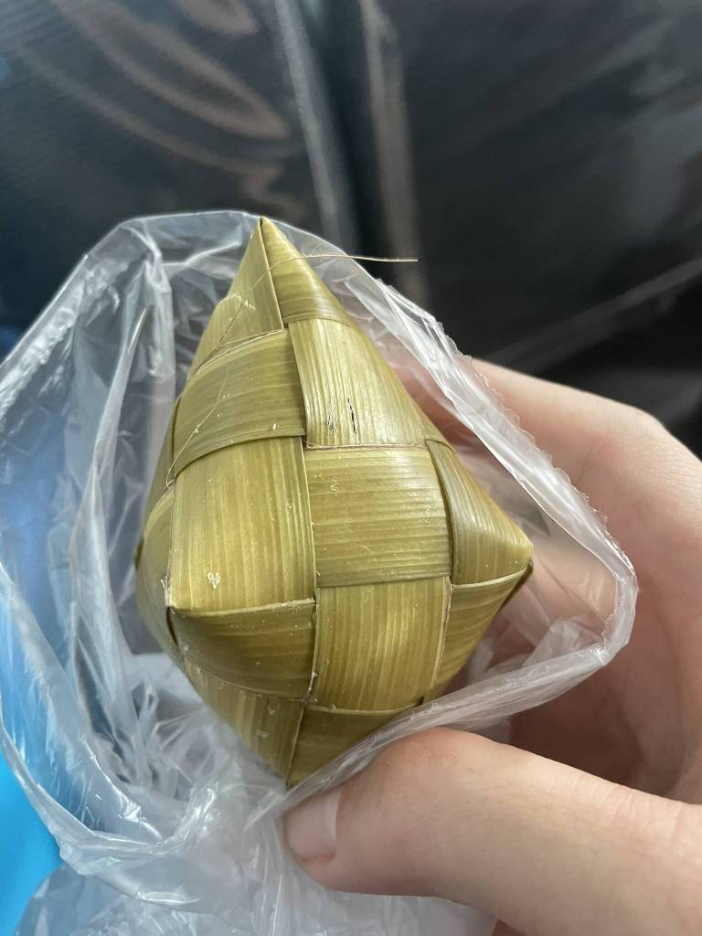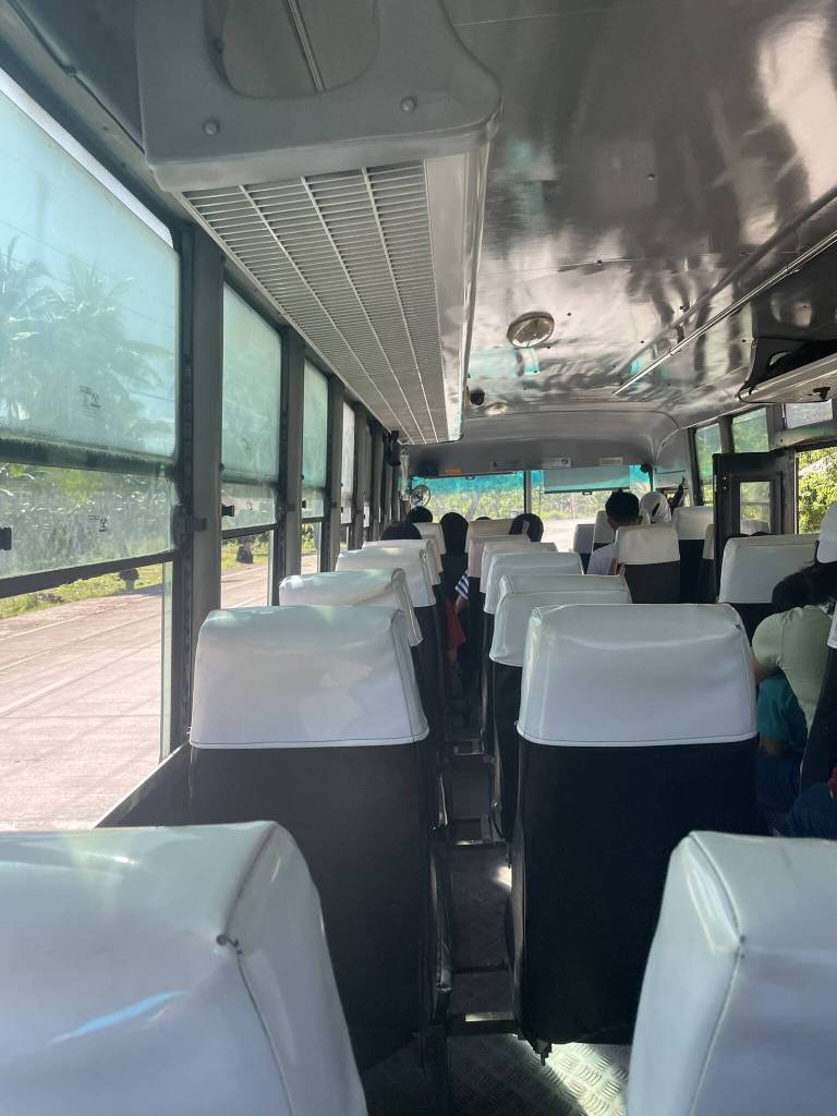 For 320 Pesos, I buy a ticket for the air-con bus scheduled to leave “soon”. Relieved that I only have 1 transfer left, I sit down in the assigned seat close to the other foreigners heading to Malapascua. An older European man and a Latina lady are engrossed in a conversation about when the bus may leave. They both have been given different information, but both departure times are long over. Neither me nor the Philippino travellers worry much and just 10 minutes after I board, we pull out of the terminal. But then the real test for the western nerves begins. The bus stops frequently to pick up people from the side of the road. This is common practice in many parts of the world, since the driver wants to maximize the fares paid. But the fellow European traveller is not having it. He was told that this is a direct bus, and he’s anxious to catch the boat to Malapascua as soon as possible. So the mood sours as we stop for a meal break at a rest stop. For my part, I’m quite happy about the opportunity to stock up on snacks and take advantage of the stall selling fried chicken and a ball of glutinous rice covered in palm leaves. I get some juice and a bottle of water from another shop and then wait in front of the bus for the driver to announce the departure.