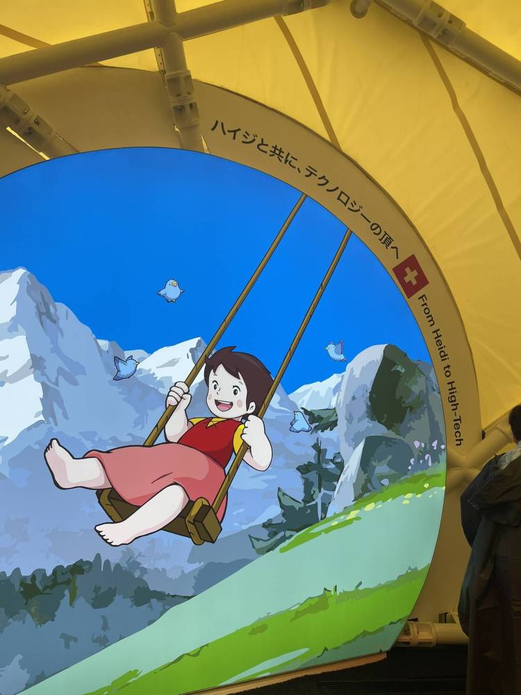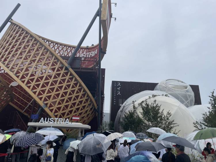 The Austrian theme is all about music, innovation, and the connection between the European alpine nation and Japan. In the first section of the exhibition, we listen to the performance of a self-playing Austrian piano equipped with a Japanese automated motor. The second part focuses on Austrian-led initiatives across the SDGs, including humanitarian and medical achievements. It’s another of the pavilions that impress me much more than their counterpart in Dubai. But let’s go back to Switzerland: my former colleague is nowhere to be seen, so I ask the new guy standing at the VIP entrance for fast access to the pavilion. He’s delighted to hear that we are from Lucerne — just like him — and quickly shows us the way down the shortcut to the pavilion entrance.