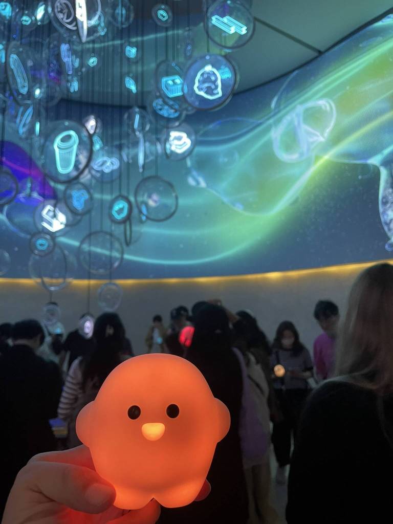 I’m impressed by the Korea exhibition, but it confirms my impression, that the Expos of 2021 and 2025 are very different on many levels. Given the budgets, space available, and target groups, this should not be a surprise to anyone. But one pavilion that hasn’t changed too much from Dubai is Germany. Located right next to Korea, it’s the second pavilion we visit. The queue for the restaurant is longer than the one for the exhibition, and we are promptly welcomed in German. Just like the Japanese guests in front of us, we receive a small speaker device in the shape of the pavilion’s “Circular” mascot. It guides us through the exhibition focused on sustainability and recounts additional information when requested. A great way to transmit the concept of “cuteness, edutainment, and immersion” and definitely well suited for the expected 90% Japanese visitors!