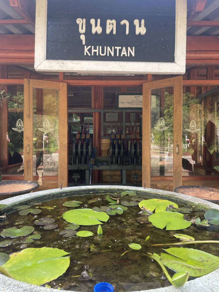 To our surprise, the train pulls into the station almost on time. A few people jump out of the open doors shortly before the locomotive comes to a full stop. We easily locate our car and climb up the steps to the 3rd class wagon. But before we can look for our seat, an older lady calls out to get our attention. She’s busy hoisting large sacks of rice onto the train, and we help her to secure them in the small passage between the 2 cars. Moments after she climbs up the stairs herself, the train slowly starts to move, and we roll out of Lampang Station. Neither Verena nor I are morning people, so on the ride to Khun Tan we quietly sit on our reserved seats and doze off as we ride along with a breeze flowing in through the half-open window.