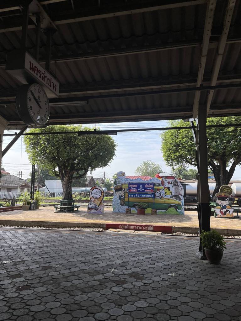 Open windows, lush rice fields passing by, dimly lit by the setting sun in the background. That’s what a 3rd class ticket on a Thai train can get you. But let’s start at the beginning. During our 3-day stay in Lampang, Verena and I want to explore one of the nearby National Parks. To get to Doi Khun Tan, we have to retrace our journey from Chiang Mai to Lampang by train and get off at Khun Tan Station. Both my German companion and I don’t have high standards for comfort and so, we opt for the 3rd class car. Checking the departure times on Google Maps, we order a Grab taxi to take us to the station, buy our tickets, and on the pretty empty platform wait for the local train to arrive.