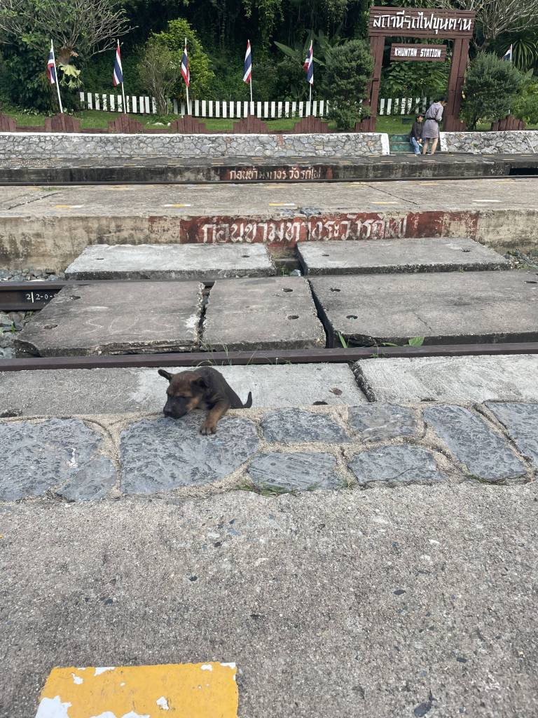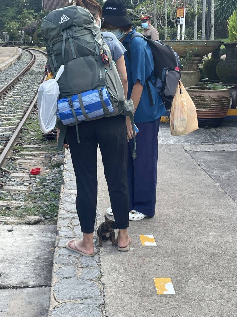 After an eventful hike through the national park, we make it back to the station with plenty of time to spare before the scheduled departure of the return trip. With our empty stomachs growling, we look for a light snack to pass the waiting time. To our surprise, for the first time ever in Thailand (read: Southeast Asia), we are unable to find a food stall within walking distance from the station. So a chips package and a plastic cup of spicy green mangoes have to do till we get back to Lampang. By now, the train is officially late, but the cute puppies playing on and next to the empty tracks keep us and the rest of the backpackers scattered along the platform entertained. Then, the sound of the horn announces the arrival of the train and we take position at the end of the platform.