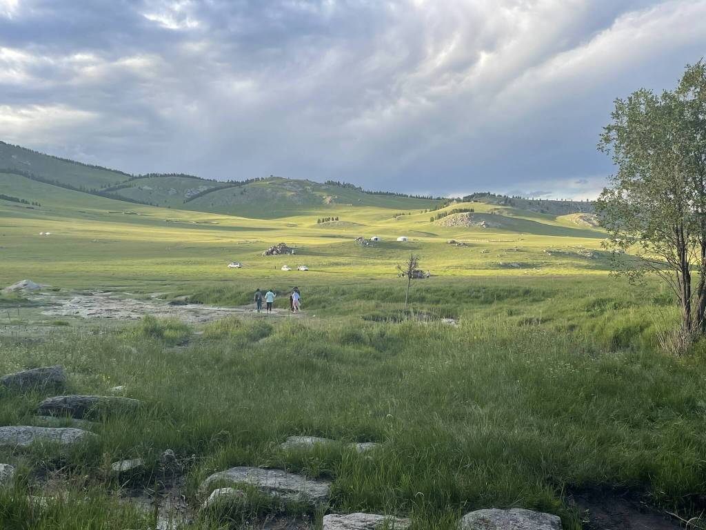 We take some time to absorb the views of the secluded meadow with only 1 lonely ger sitting on top of a small hill, and then decide to set up our tents at the bottom of that hill, where there is enough falt surface and space to park the car. A huuge rock in the middle of the field serves as a kitchen area, where we heat up water for cup noodles (me) and camping food (the Scandinavians). Quite tired after the long day, we head to bed as soon as the sun sets and rain clouds pull up. Then, just as I’m about to slip into sweet dreams, I suddenly hear a thunderous sound. First confusing it with a thunderstorm, I soon realize that it’s actually a herd of horses headed for the river to drink before the night falls. The beat of the hooves seem way too close for comfort and I switch on my headlight in an attempt to ensure the animals see my tent in the dark. Then I open the door and see around 80 horses rushing down the hill to the watersource. After about 5 minutes, the whole lot runs back up the hill and only returns for the morning drink at around 6am.