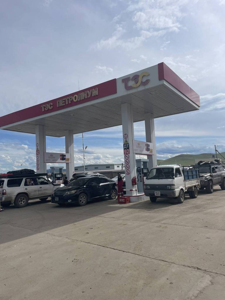 After saying goodbye to the kind owners of the Fairfield Tsetserleg Guesthouse & Café, the Scandinavians & I are in good spirits for the journey ahead. After all, our driver finally got some clear instructions about our plan in Mongolian. First, we stop at the The Museum of Arkhangai Province, where I look at artifacts telling tales of the regions culture, wildlife, famous people and more. Meanwhile, my fellow travellers are more interested in the spiritual world. So they visit a nearby Buddhist monastery. Done with the cultural sightseeing, we get back on track for the drive to the hot spring area. With the next supermarket stop expected in about 3 to 4 days time, we want to stock up on noodles, sweets and other snacks before leaving the provincial capital. Just outside the town centre we find a hypermarket with an adjacent gas station. So while we shop for food, the driver joins the loong queue of cars waiting to refill their tanks before the next hours long drive through nomansland.