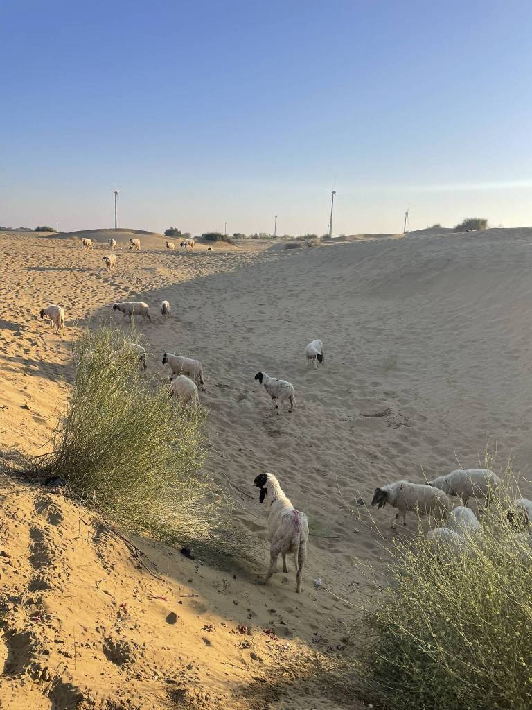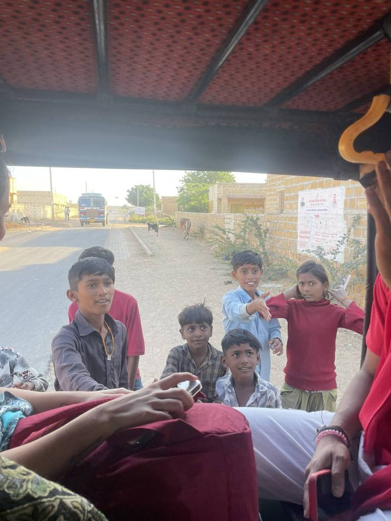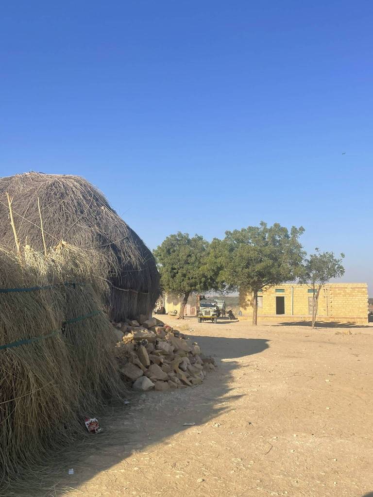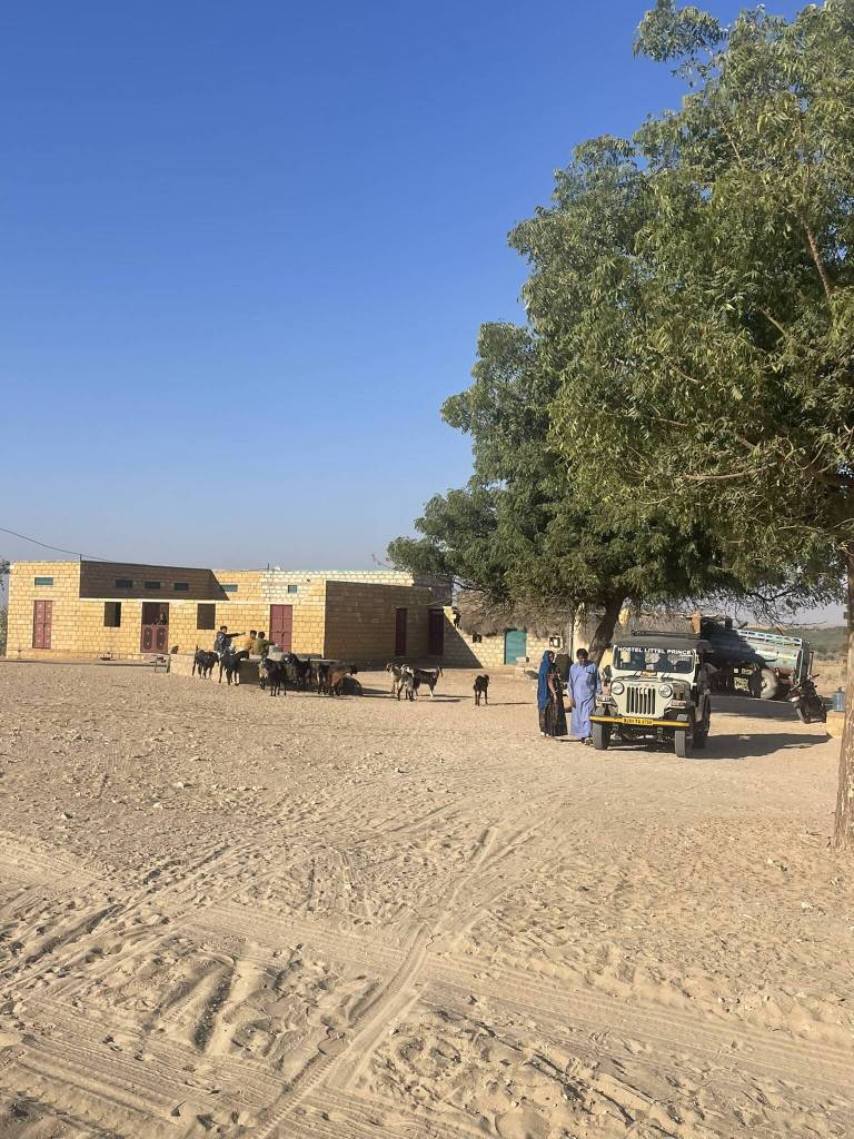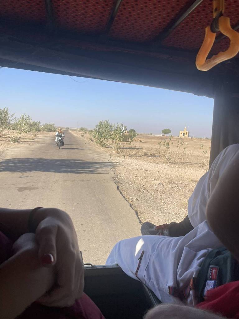 45 minutes later, we arrive in the small village where our hosts live with their families. Kids of all ages are playing together in the large courtyard between the cubic shaped concrete houses. A lady is filling large copper vases with water from the underground tank, and in the semi-open building next to the tank, another woman is rolling out dough for fresh roti. The only adult man visible is our driver. He greets his baby son and plays with him for a while before ushering us into the jeep to return to the city. During the 1-hour drive back to civilisation all of us take some time to reflect on the last night. We exchange Instagram handles before first the Brazilian girls and then Akira are dropped off at their accommodation. Then Kesh, Andy and I get off at the Little Prince Hostel, from where we venture into the town to explore options for the guys to go on a quad ride in the dunes. However, we only get one proposition from a dubious man who’s known across town for scamming tourists left and right. So we resort to spend the rest of the day with the best activity one can do in India: eating.