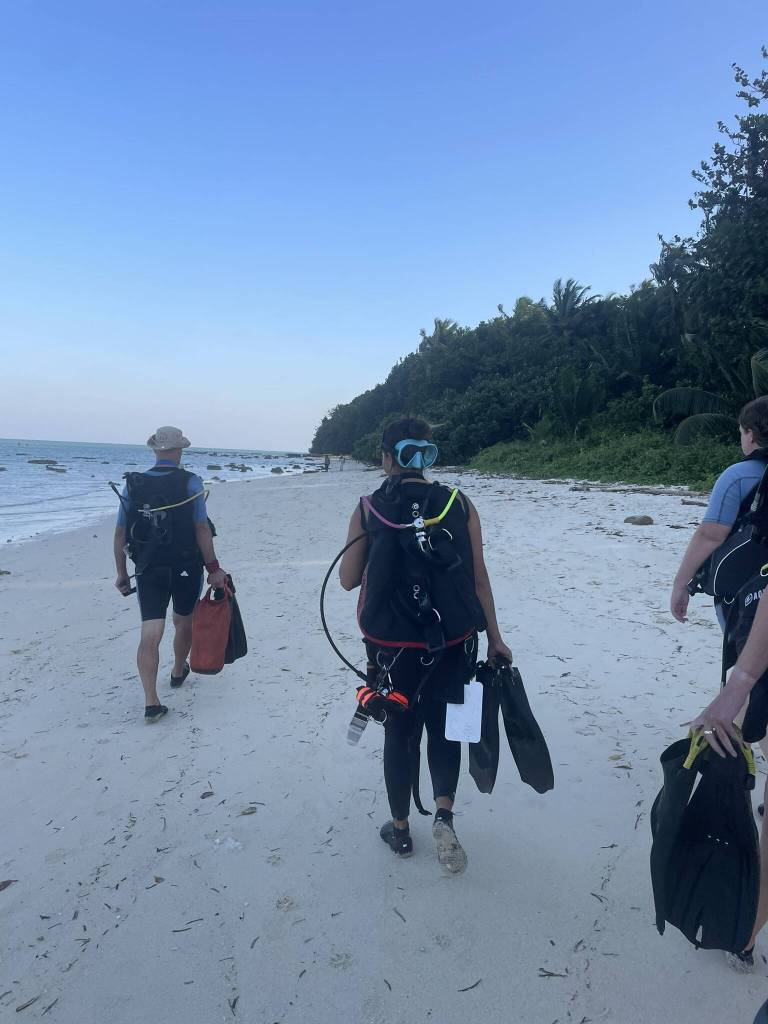 Forty minutes. That’s all it takes from stepping off the plane in Port Blair to boarding the government ferry headed for Havelock Island. And upon arriving at my final destination 2 hours later, the island vibes continue. 5 minutes into my walk towards Govind Nagar in the midday sun, a dive shop employee heading home offers me a ride. I arrive at Classic Hostel and run by Goldie and his family. The small guesthouse is tucked away in the jungle and features 1 private room, 1 five-bed dorm, a large common area and kitchen. It’s almost always full and I can easily see why. Indian and international guests flow in and out, with the shared bond being diving. And that’s why I’m here too: I head to Scubalov to check the dive schedule for tomorrow, but they want me to sign up to a refesher course first. So I end up joining nearby DiveIndia instead. Great energy, lots of women divers, a perfect fit.