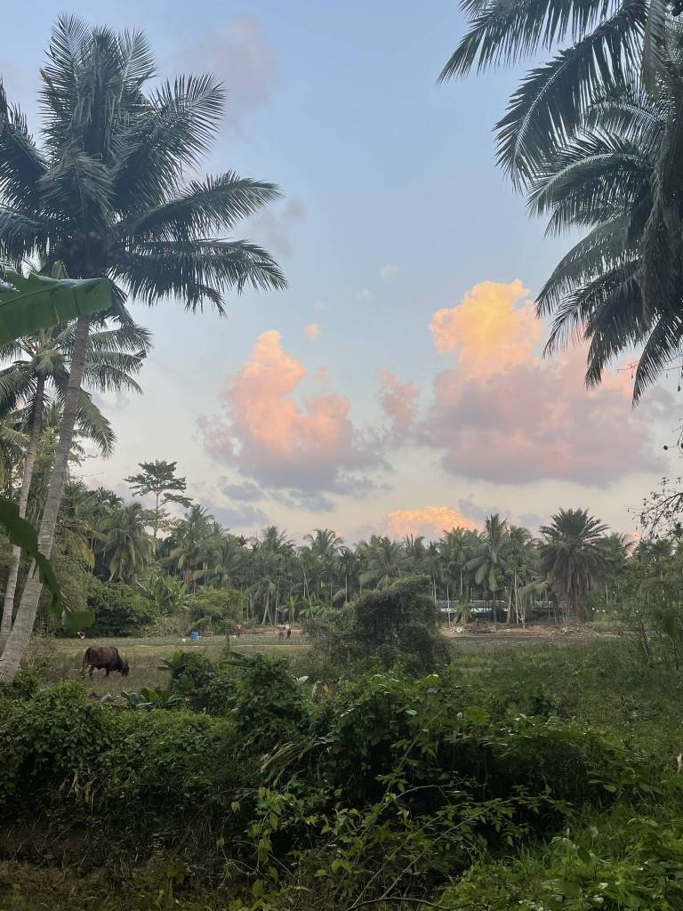 The alarm rings early, but the sun is already up by the time I’m spreading peanut butter on toast at 5.50am — a reminder that India runs on one timezone, even though it’s 1300 km to Chennai on the mainland. By 6.15am we’re geared up and walking to the boat, joined by a few open water course trainees. Once on the boat, we’re heading out to The Wall, where an enormous octopus waiting for us as soon as we reach the bottom. The surface interval blurs into samosas and sharp, sweet chai, and soon we’re back in for dive number two at The Lighthouse; I’m skeptical when Nidhin mentions “disco clams,” but the moment I see their bright red shells and the mouth pulsing with blue current, I’m sold. Back on land, I’m having a delicous Thali lunch with roommate Sanjana, followed by fresh coconuts cracked open straight from the garden. In the evening, I head to the vegetable market for a quick grocery run to cook for the first time in months.