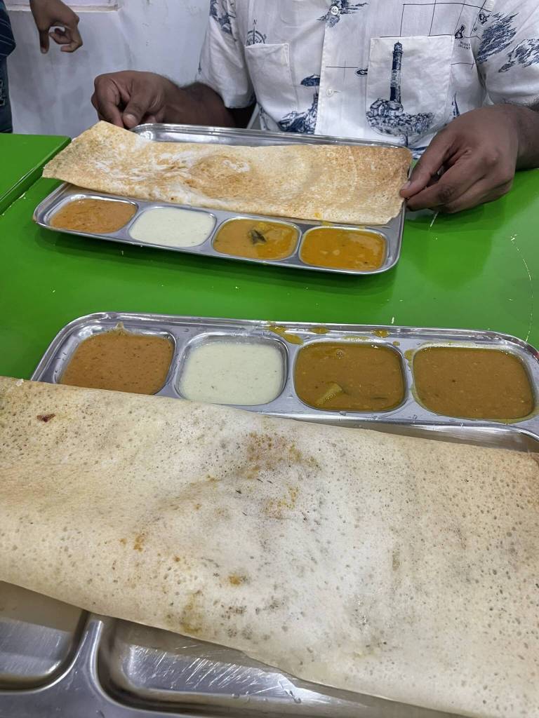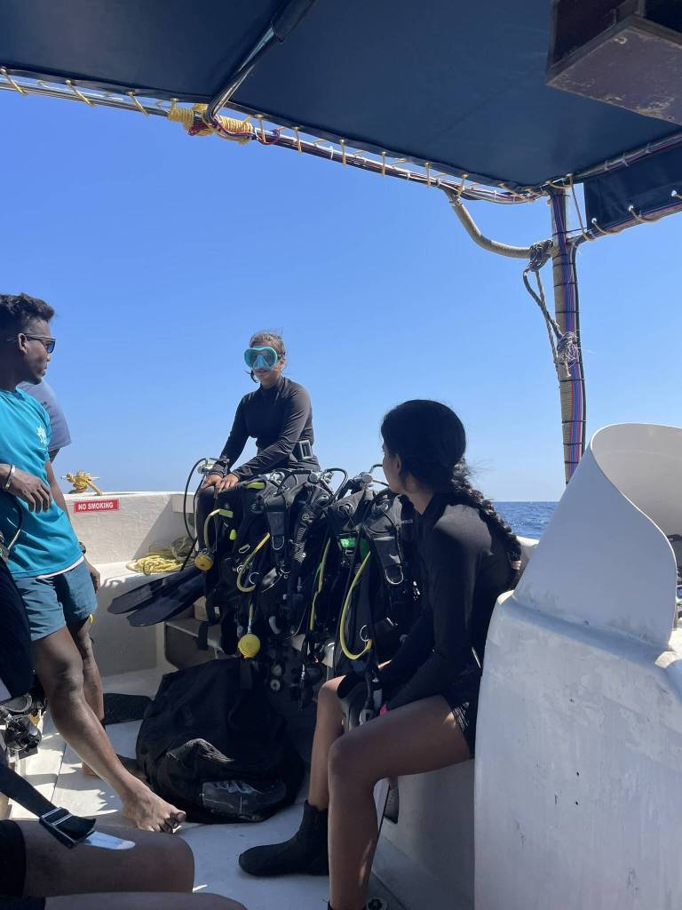 The earliest reporting time yet: 5 a.m. Sites: Jackson’s Bar and Johnny’s Gorge (named after Dickson’s brothers). Janak and his friends from the Advanced Open Water course are on the same boat and we have some good laughs. Once in the water, huge schools of fish, barracudas, and stunning corals fill the dives. Everything goes smoothly, except for the end of the first dive, when Karishma accidentally drops my weights. Before taking off to the second site, she casually descends back down to 30 meters to retrieve them like it’s nothing. On the ride to Johnny’s Gorge, we enjoy vada and tea. Then we’re back in the blue, swimming among even more barracudas and through the deep gorge. I stay present, soaking up every last minute underwater, knowing it would be a while before I return. That night, Janak joins me for my last dinner at the dosa place. Then we watch his Spiti documentary, which stirs a deep longing for mountains and strengths my vision to return to India soon, to visit the far north.