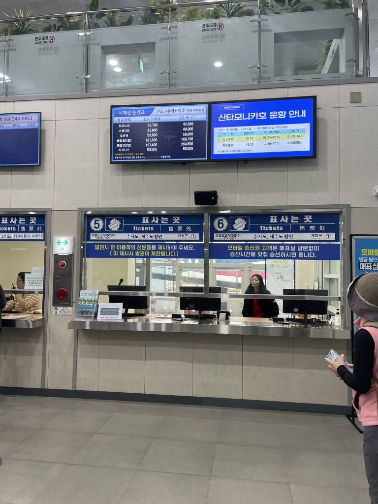 Back in 2023, I visited Jeju island for the first time to hike on the Jeju Olle trail. Whenever I chatted with other trekkers (mostly older Korean people), sooner or later one of us would ask the other: “What’s your favourite route of the Olle trail?”. And the numbers that were repeated most were 18-1 and 18-2. However, I had plans to meet a friend in Busan shortly after returning to Jeju-si and no time for a detour to Chuja-do. So I marked the small island between Jeju and mainland Korea with a star on my Kakao Maps and vowed to come back to complete the 2 extra routes. (Find an overview of all the routes here: jejuolle.org). And here we are: I finally make it back to Jeju island in March 2026. Almost exactly 3 years later. This time I’m taking the no-fly route heading south from Seoul to Jindo by bus (via Jeonju and Mokpo). I stay the night in Jindo, making sure that I can reach the ferry to Chuja do departing once a day at 8am sharp. The next morning, I’m waiting at the local bus terminal at 6am and ask around among the middle-aged drivers until I find the one leaving for the port. Once there, I quickly buy my ticket and board the waiting ship.
