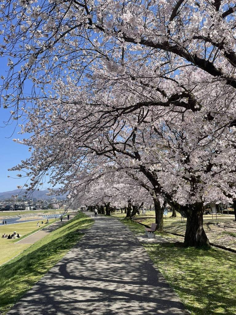 When I feel like leaving the city behind, I start looking for quieter places to catch the blossoms across Ishikawa and the wider Hokuriku region. Kibagata Park near Komatsu is an easy escape, with long, open stretches around the water where the sakura reflect softly on the surface. Up near Tsubata, the thousand cherry trees along 母恋街道 form a gentle tunnel that never feels too crowded. Crossing into Toyama, the banks of the Funagawa River are lined with blossoms and, on clear days, framed by distant mountains, while Fukumitsu near Inami offers a slower, more local atmosphere. These are the kind of places where you linger a little longer, with fewer people around and more space to take it all in. Another more well-known option is Takayama, where the Sakura blooming period often coincides with the local spring festival.
