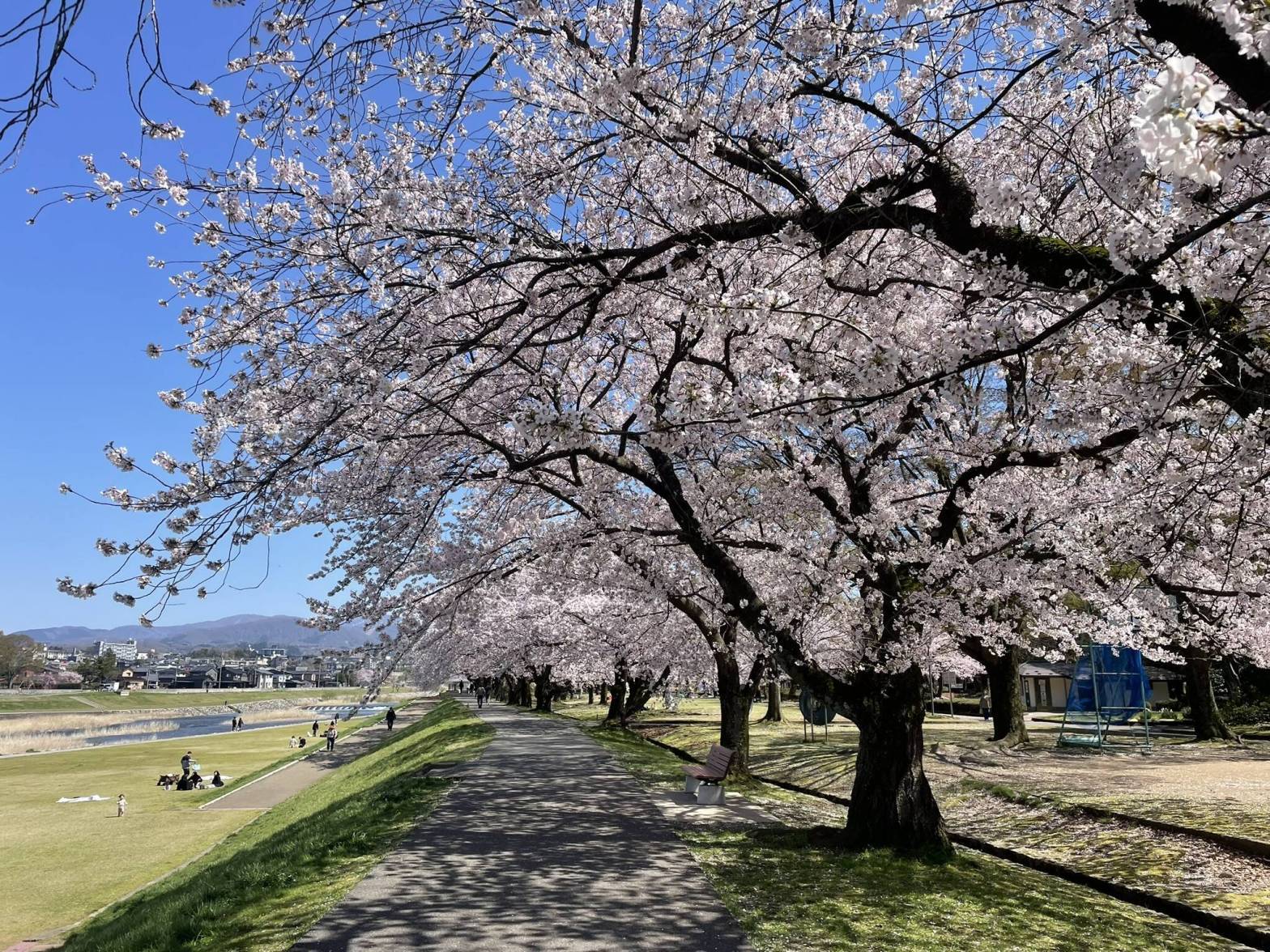 When I feel like leaving the city behind, I start looking for quieter places to catch the blossoms across Ishikawa and the wider Hokuriku region. Kibagata Park near Komatsu is an easy escape, with long, open stretches around the water where the sakura reflect softly on the surface. Up near Tsubata, the thousand cherry trees along 母恋街道 form a gentle tunnel that never feels too crowded. Crossing into Toyama, the banks of the Funagawa River are lined with blossoms and, on clear days, framed by distant mountains, while Fukumitsu near Inami offers a slower, more local atmosphere. These are the kind of places where you linger a little longer, with fewer people around and more space to take it all in. Another more well-known option is Takayama, where the Sakura blooming period often coincides with the local spring festival.